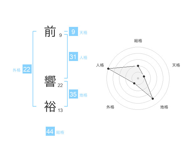 前 響裕さんの総格は44画の2点!