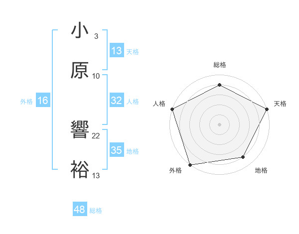 小原 響裕さんの天格は13画の5点!