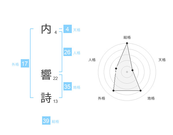 内 響詩さんの総格は39画の5点!