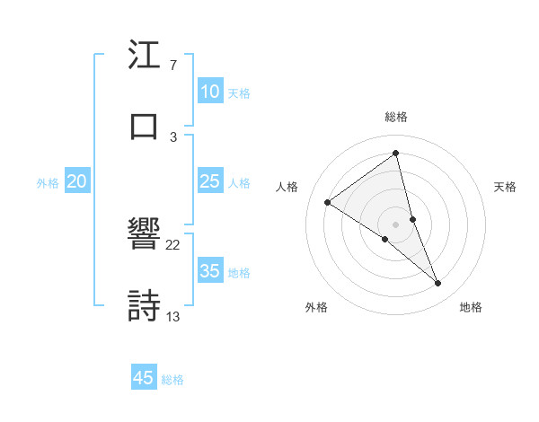 江口 響詩さんの総格は45画の4点!