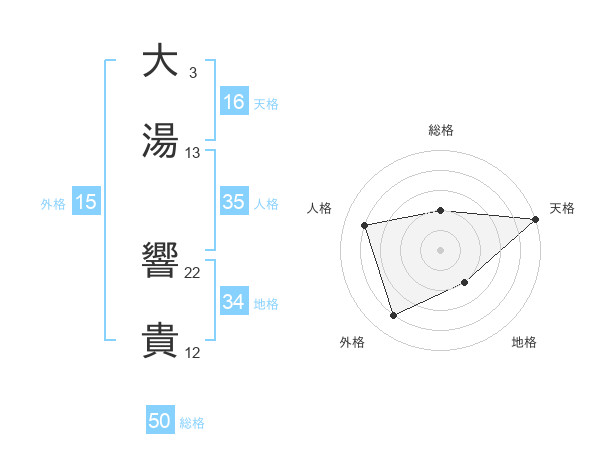 大湯 響貴さんの総格は50画の2点!