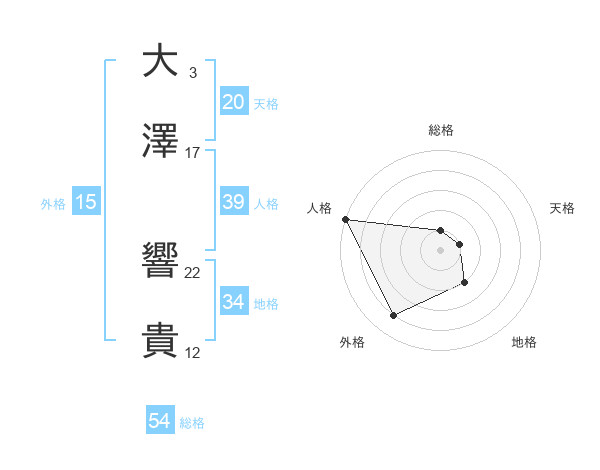 大澤 響貴さんを姓名の画数から五運を鑑定