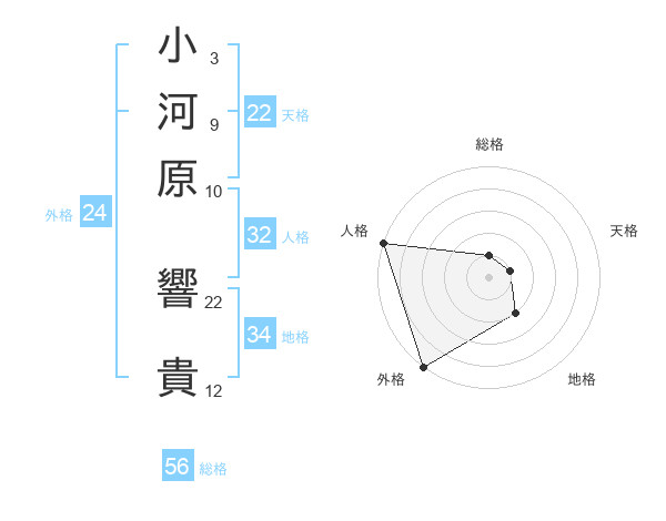 小河原 響貴さんを姓名の画数から五運を鑑定