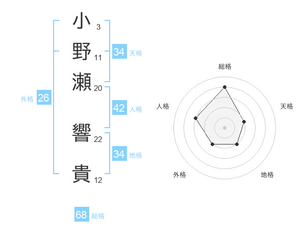 小野瀬 響貴さんを姓名の画数から五運を鑑定