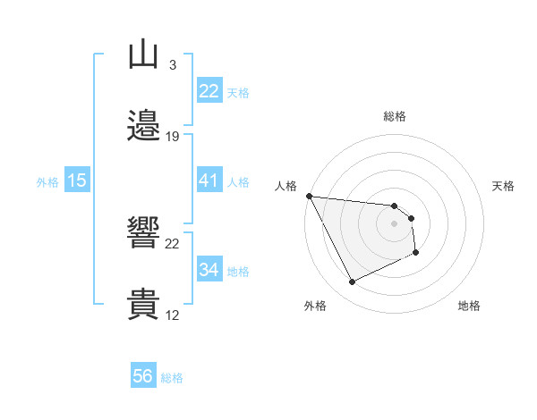 山邉 響貴さんを姓名の画数から五運を鑑定