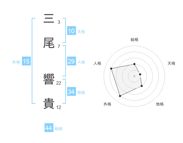 三尾 響貴さんを姓名の画数から五運を鑑定