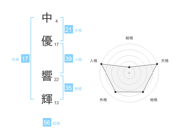 中優 響輝さんの天格は21画の5点!