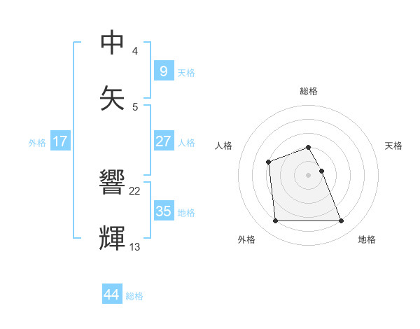 中矢 響輝さんを姓名の画数から五運を鑑定
