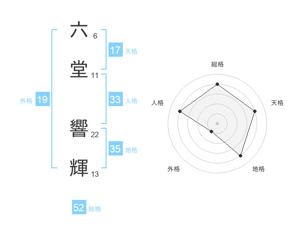 六堂 響輝さんの総格は52画の4点!