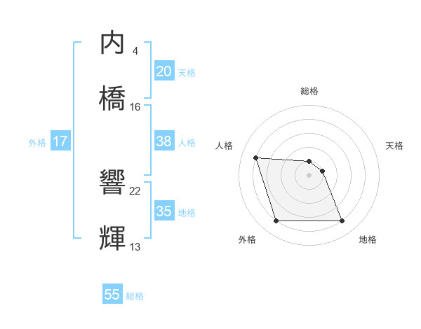 内橋 響輝さんの人格は38画の4点!
