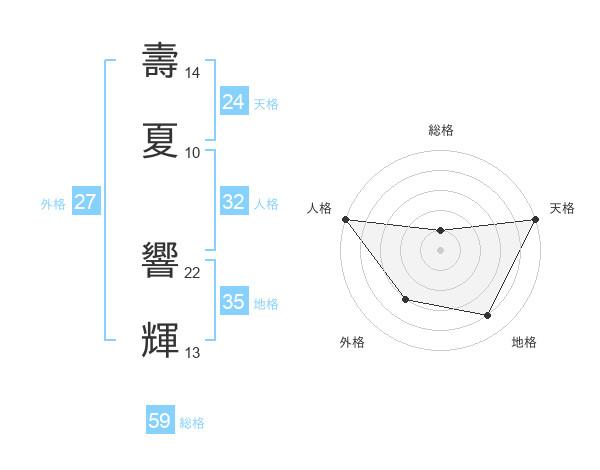 壽夏 響輝さんの天格は24画の5点!
