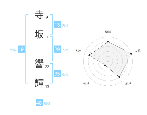 寺坂 響輝さんを姓名の画数から五運を鑑定