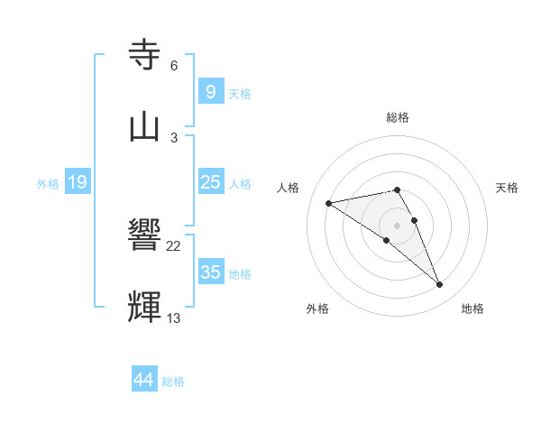 寺山 響輝さんの総格は44画の2点!