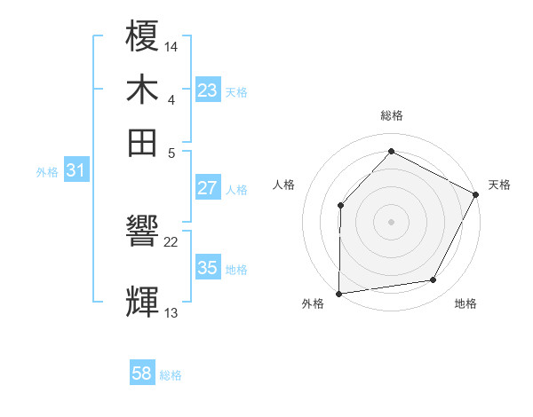 榎木田 響輝さんの総格は58画の4点!