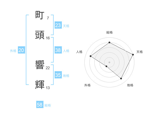 町頭 響輝さんを姓名の画数から五運を鑑定