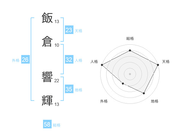 飯倉 響輝さんを姓名の画数から五運を鑑定