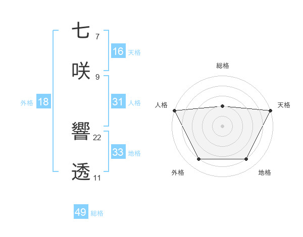 七咲 響透さんの総格は49画の2点!