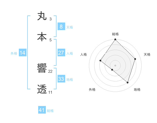 丸本 響透さんの人格は27画の3点!