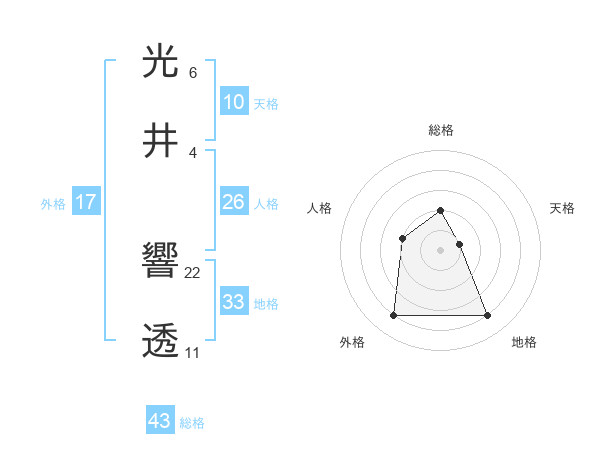 光井 響透さんを姓名の画数から五運を鑑定