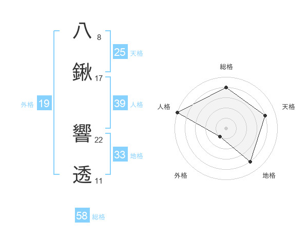 八鍬 響透さんの総格は58画の4点!