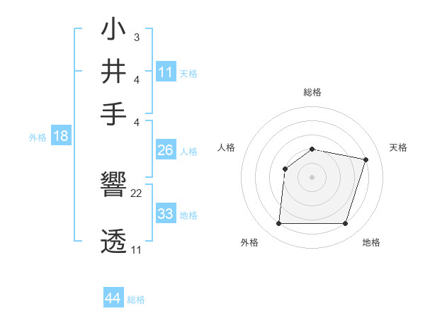 小井手 響透さんの総格は44画の2点!
