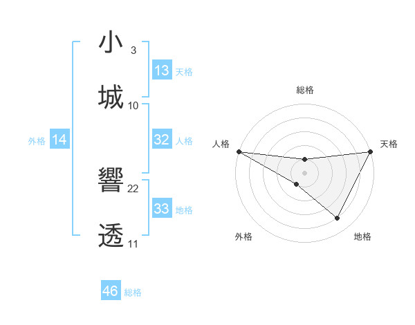 小城 響透さんの総格は46画の1点!