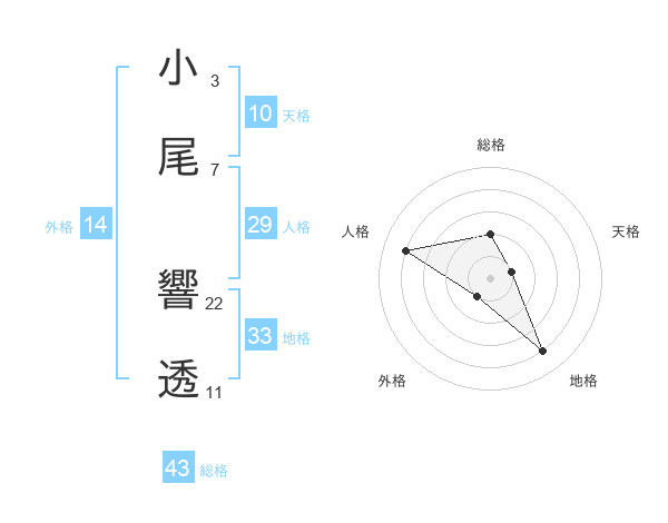 小尾 響透さんの総格は43画の2点!