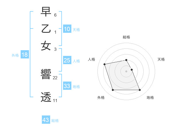 早乙女 響透さんを姓名の画数から五運を鑑定