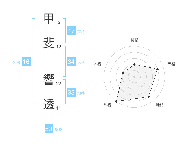 甲斐 響透さんの総格は50画の2点!