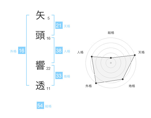矢頭 響透さんを姓名の画数から五運を鑑定
