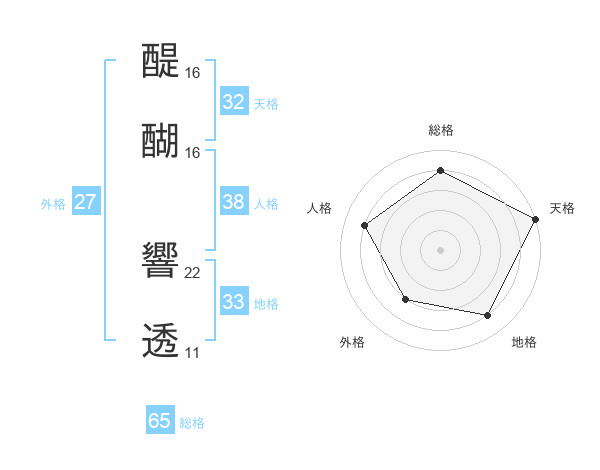 醍醐 響透さんの総格は65画の4点!