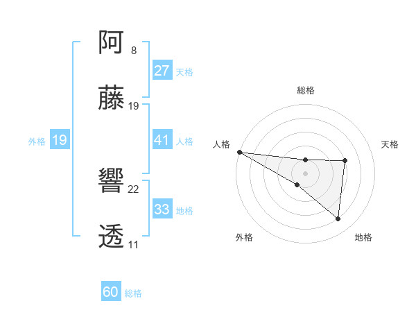 阿藤 響透さんの総格は60画の1点!