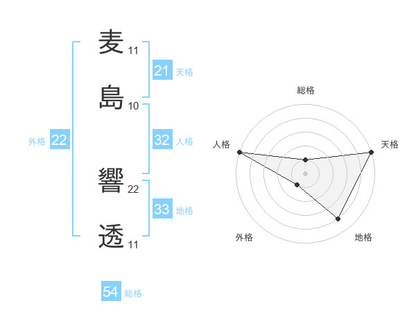 麦島 響透さんの総格は54画の1点!
