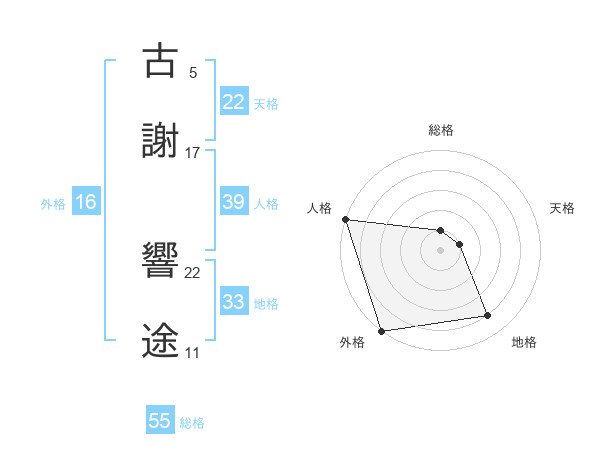 古謝 響途さんの総格は55画の1点!