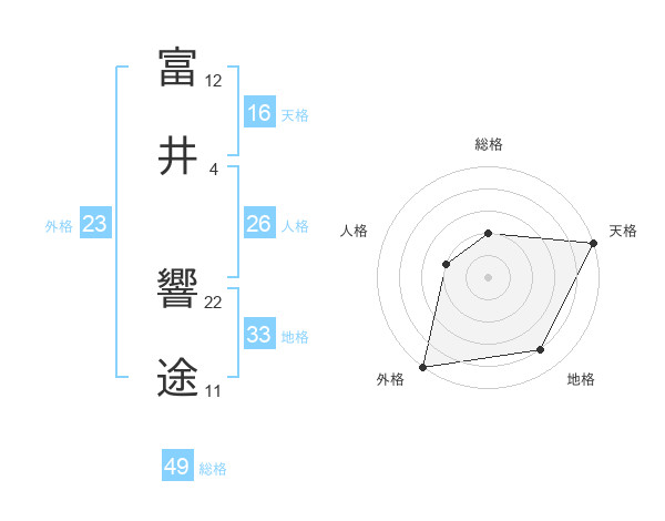 富井 響途さんの総格は49画の2点!