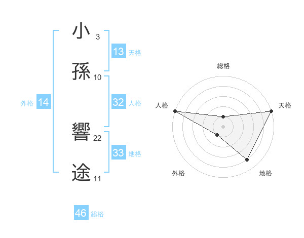 小孫 響途さんの総格は46画の1点!