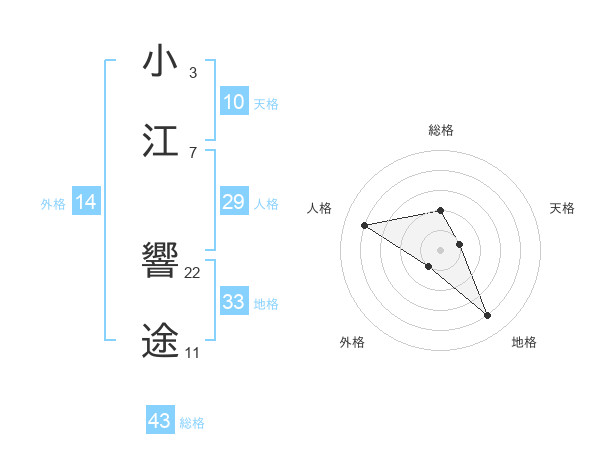 小江 響途さんの総格は43画の2点!