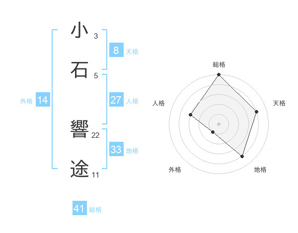 小石 響途さんの総格は41画の5点!