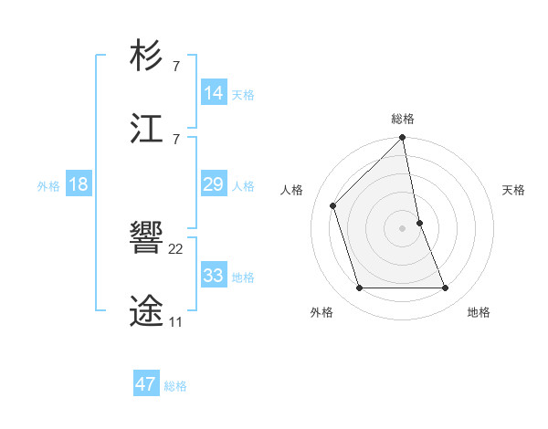 杉江 響途さんの総格は47画の5点!