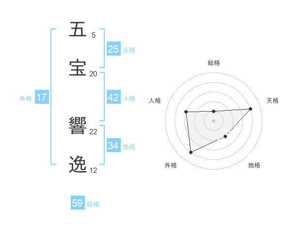 五宝 響逸さんを姓名の画数から五運を鑑定