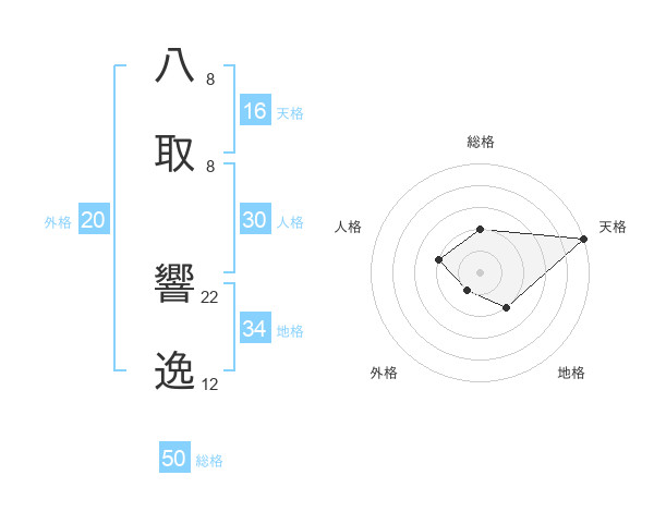 八取 響逸さんの総格は50画の2点!