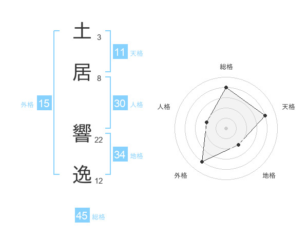 土居 響逸さんを姓名の画数から五運を鑑定