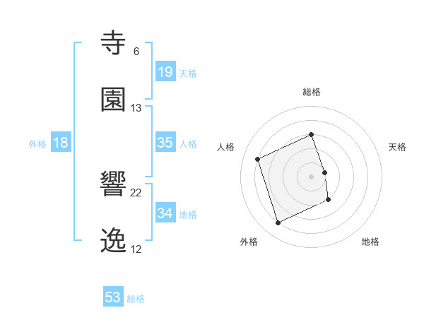 寺園 響逸さんを姓名の画数から五運を鑑定