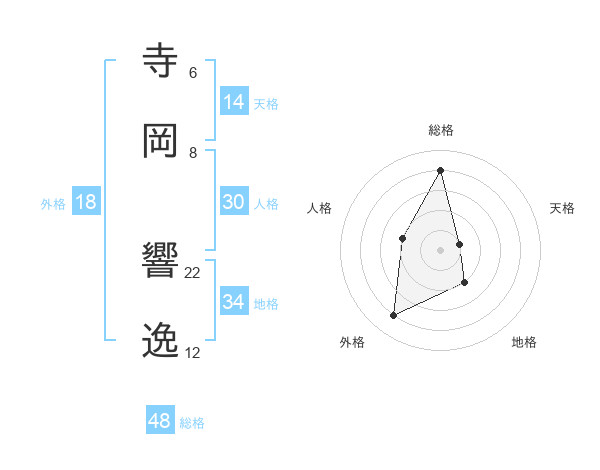 寺岡 響逸さんの総格は48画の4点!