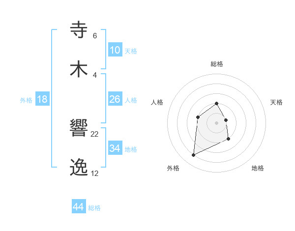 寺木 響逸さんの総格は44画の2点!