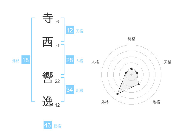 寺西 響逸さんを姓名の画数から五運を鑑定