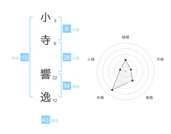小寺 響逸さんを姓名の画数から五運を鑑定