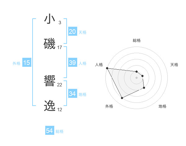 小磯 響逸さんの総格は54画の1点!