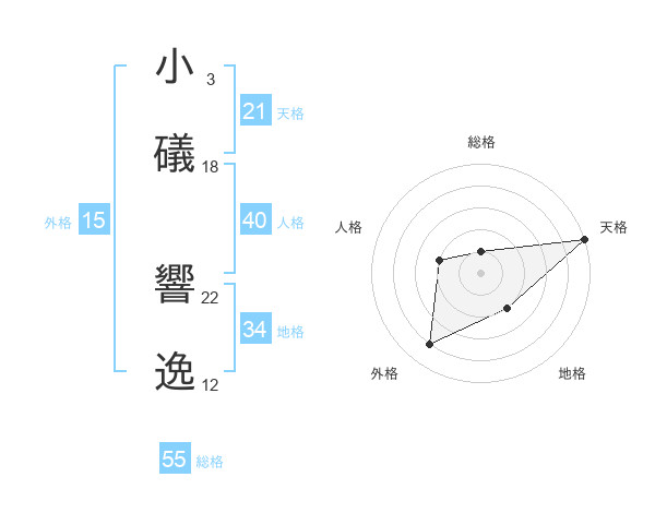 小礒 響逸さんを姓名の画数から五運を鑑定