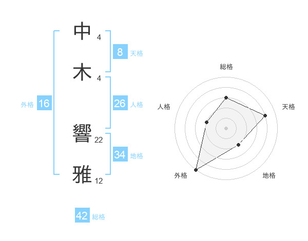 中木 響雅さんの総格は42画の3点!